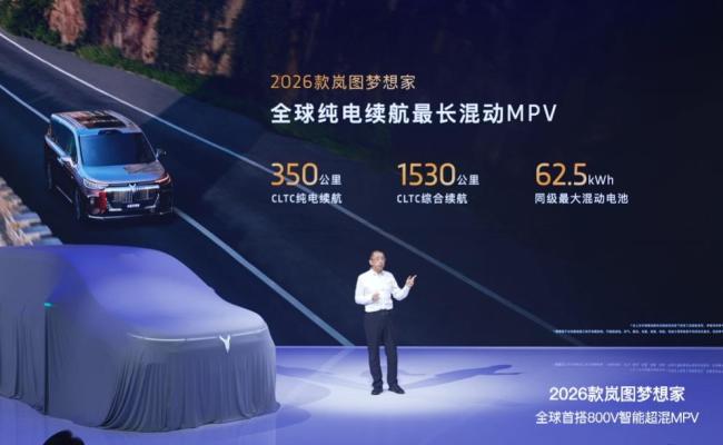 岚图梦想家自上市以来三年累计销量超过13万辆,成为销量、口碑和质量的三冠王。2026款岚图梦想家定位为“新时代旗舰MPV”,首次搭载了岚海智能超混技术,是全球首款800V智能超混MPV,开启了“智能超混MPV时代”。