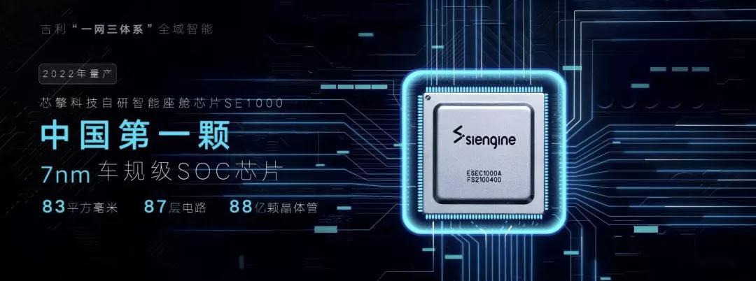 在车载智能芯片领域,吉利的关联公司亿咖通,2019年与安谋中国合资成立了芯擎科技,并于去年年底量产7nm车规级智能座舱芯片「龍鹰一号」, 龍鹰一号9月份在刚刚上市的领克08上首发搭载。